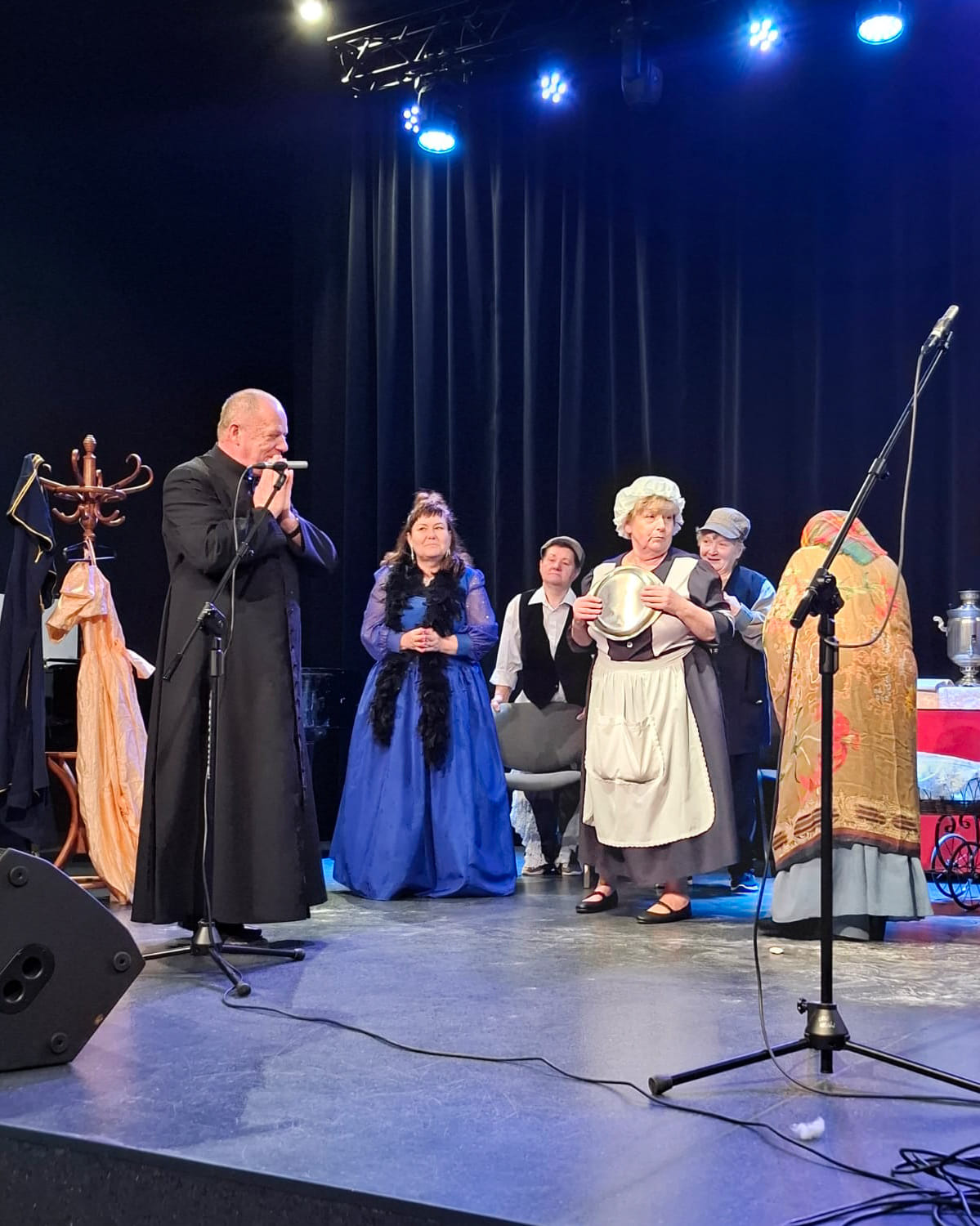 Po części warsztatowej nadszedł czas na chwilę dobrej zabawy. Na scenie pojawili się aktorzy ze Stowarzyszenia Odnowa Wsi Wroniniec oraz Strefy 60+, którzy zaprezentowali spektakl „Koń by się uśmiał”. Humorystyczna sztuka pełna zabawnych sytuacji szybko wciągnęła publiczność i dostarczyła wielu powodów do śmiechu.