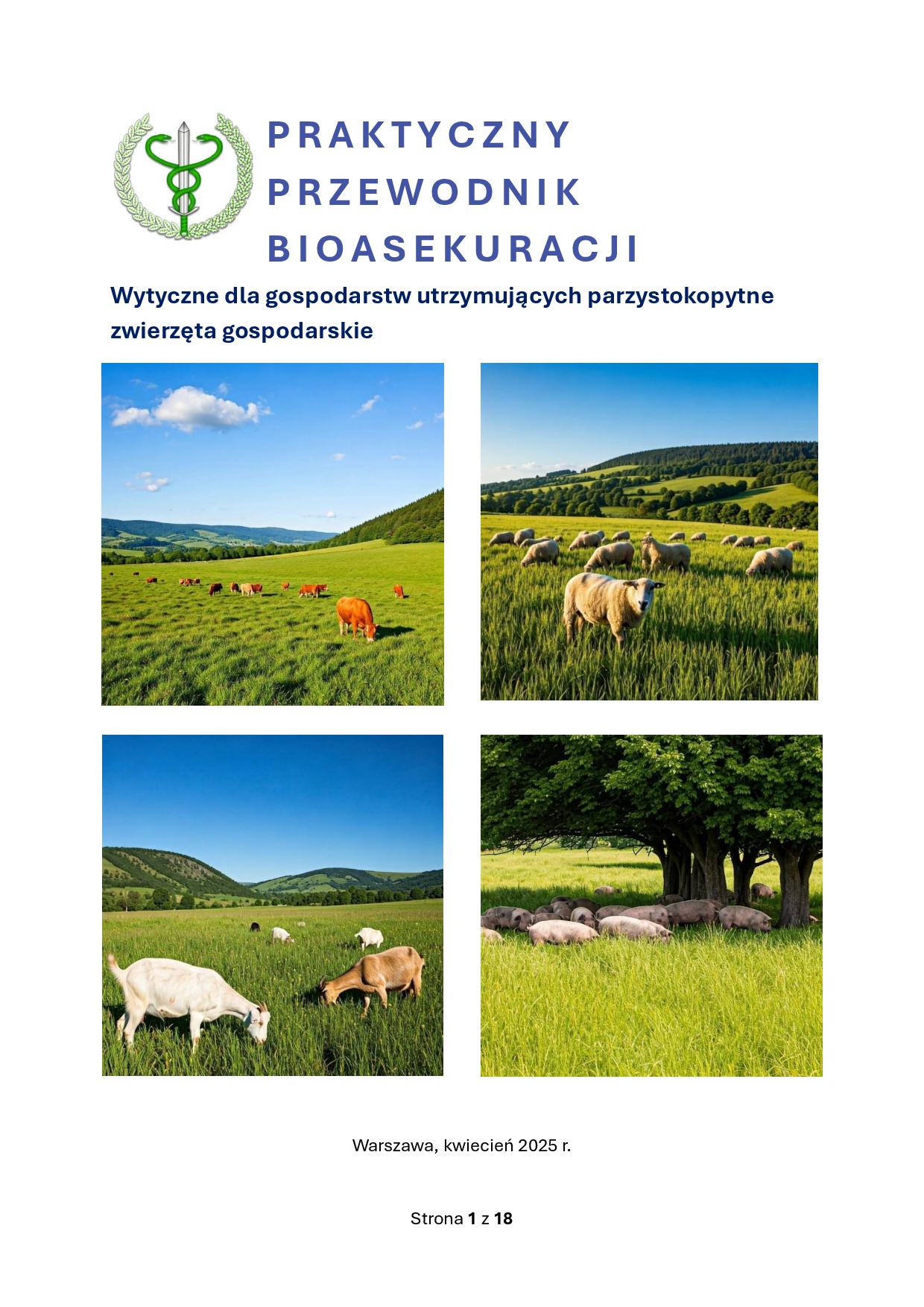 W załączeniu przekazujemy „Praktyczny Przewodnik Bioasekuracji” zawierający wytyczne dla gospodarstw utrzymujących zwierzęta gospodarskie parzystokopytne.