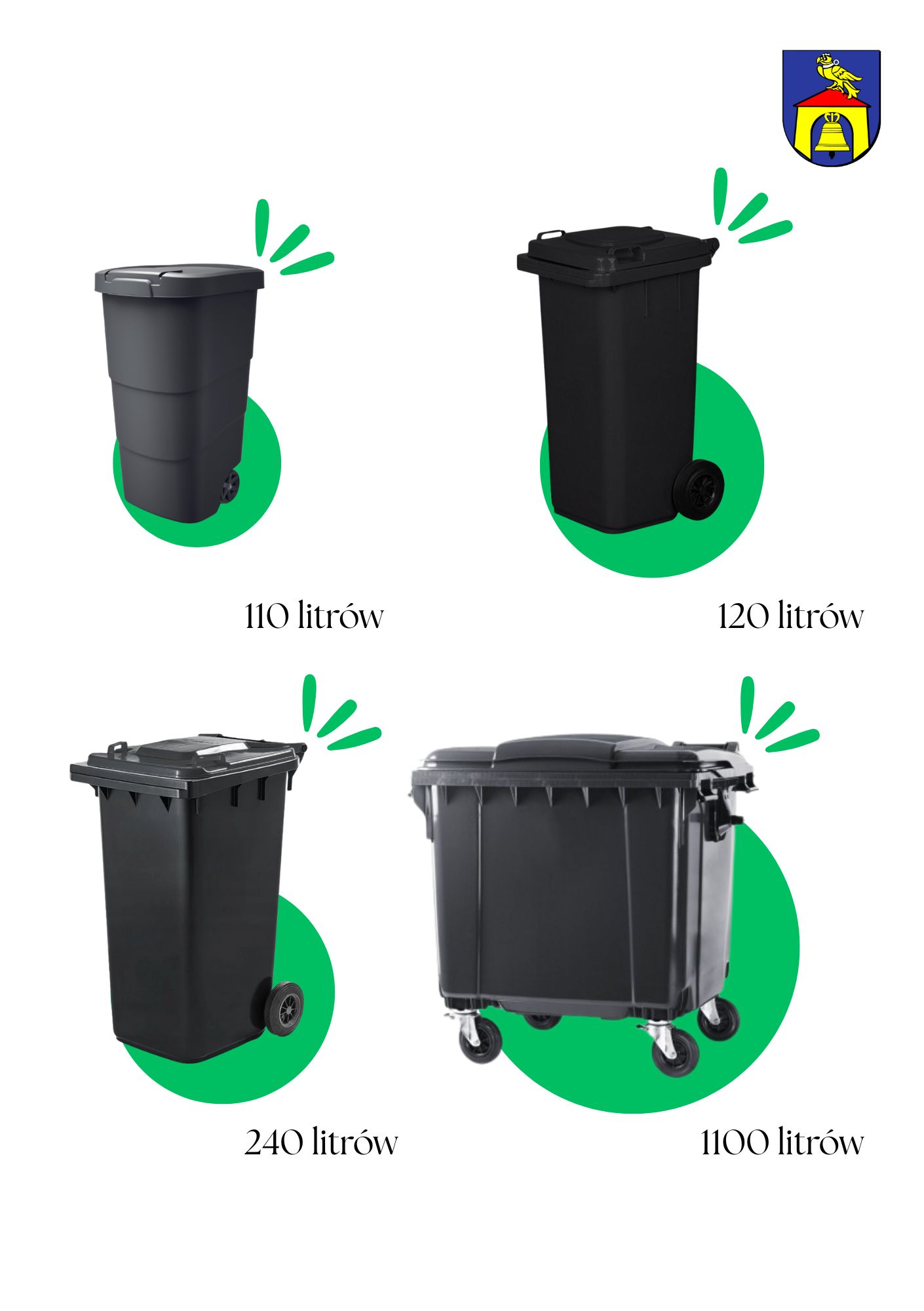 Aby ułatwić Państwu identyfikację i dopasowanie odpowiednich pojemników, przedstawiamy przykładowe, najczęściej spotykane typy i rozmiary kontenerów używanych na terenie Gminy Niechlów.