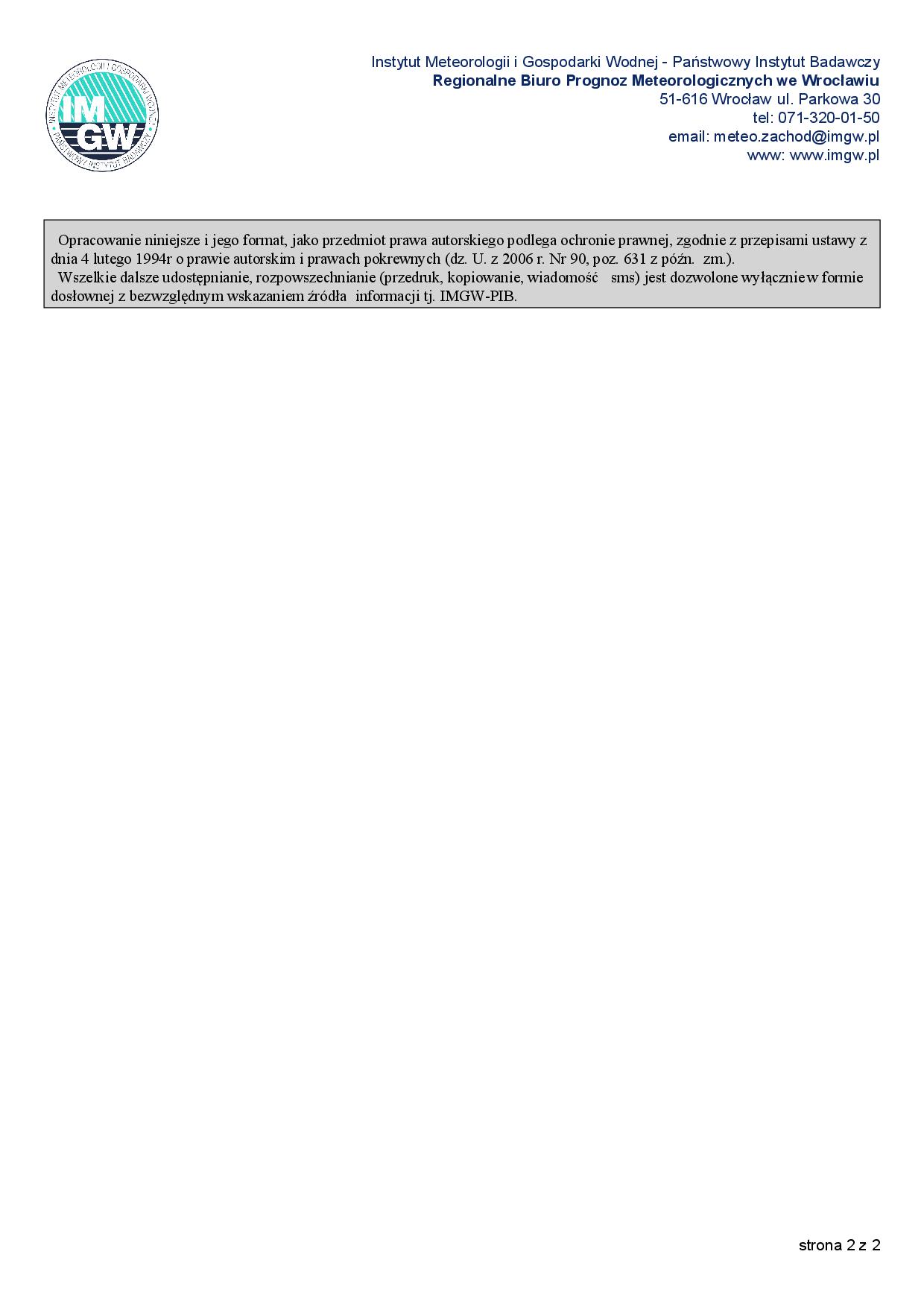 OSTRZEŻENIE IMGW DLA WOJEWÓDZTWA DOLNOŚLĄSKIEGO