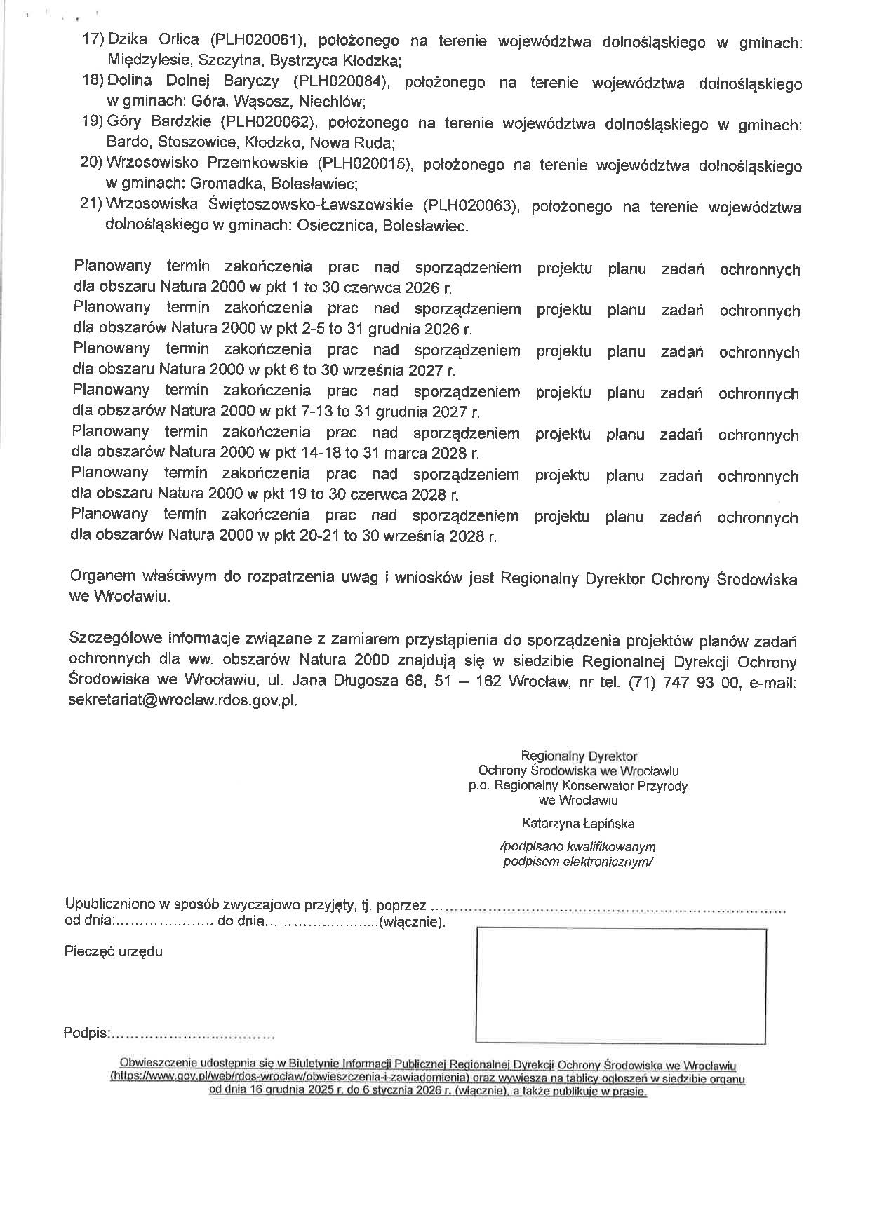 OBWIESZCZENIE REGIONALNEGO DYREKTORA OCHRONY ŚRODOWISKA WE WROCŁAWIU