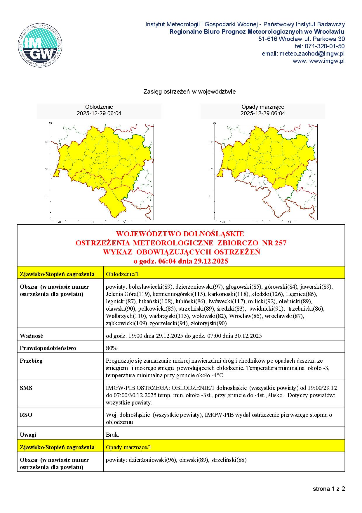 Instytut Meteorologii i Gospodarki Wodnej wydał ostrzeżenie dla województwa dolnośląskiego. Zachęcamy do zapoznania się z informacją. Szczegóły poniżej: