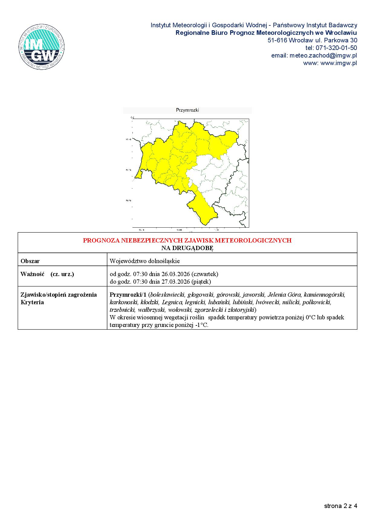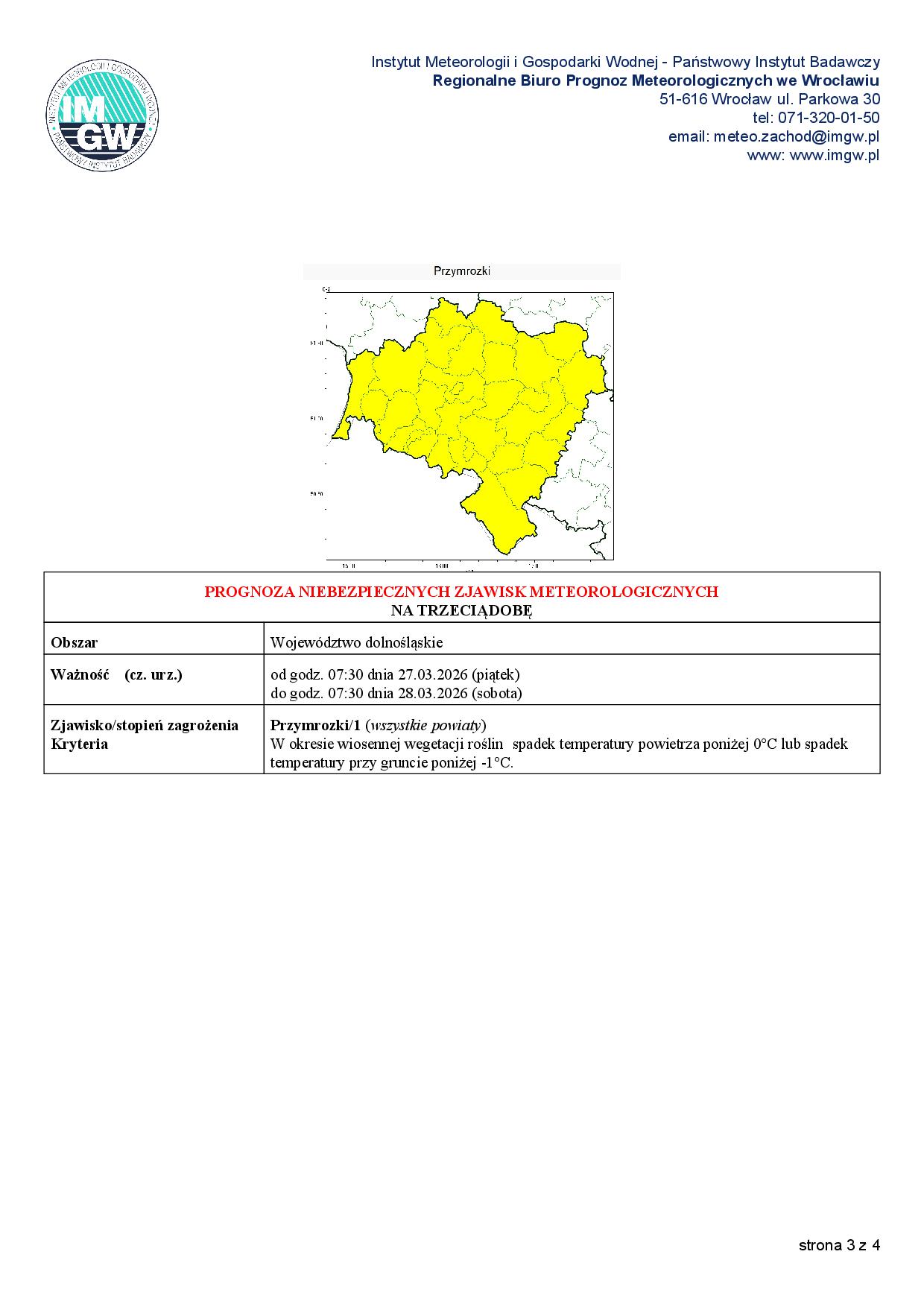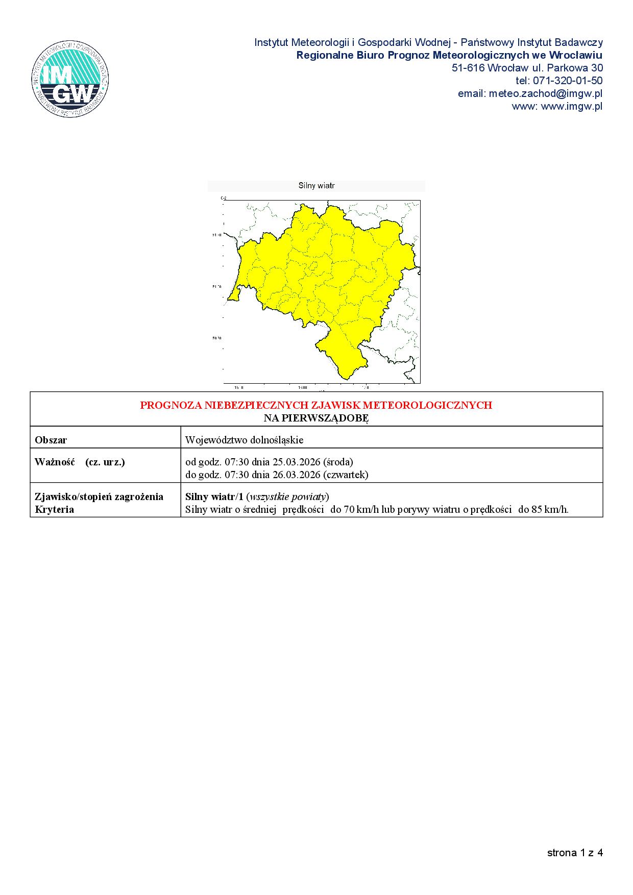 Instytut Meteorologii i Gospodarki Wodnej - IMGW PIB wydał prognozę niebezpiecznych zjawisk meteorologicznych dla powiatu górowskiego.