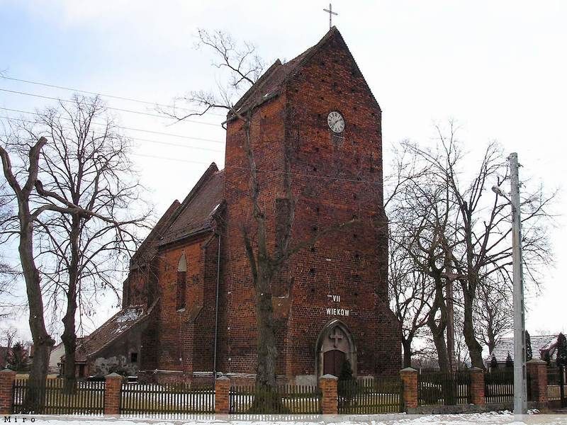 Jeden to jeden z najstarszych kościołów naszego regionu pochodzący z 1326 roku. W okresie reformacji przeszedł w ręce protestantów. Kościół został wybudowany w stylu wczesno gotyckim. Jest to budowla jednonawowa, murowana z cegły z masywnymi przyporami, z prezbiterium zakończonym prostą ścianą oraz otwartą wieżą od zachodu. Wewnątrz sklepienia krzyżowo - żebrowe. W połowie XIX wieku przebito wejście do wieży i dobudowano zakrystię i kruchtę. W 1960 roku kościół wyremontowano. Pod ścianą świątyni znajduje się ostatni juz pomnik nagrobny należący do przedstawicieli rodziny Hoffmann - ostatnich właścicieli majątku w Żabinie. Znajdują się tam też płyty nagrobne przedstawicieli szlachty śląskiej wmurowane w ściany zewnętrzne kościoła, pochodzące z lat 1598-1612. Obok kościoła stoi drewniana dzwonnica z XVIII wieku o konstrukcji słupowej, szalowana deskami i zwieńczona namiotowym hełmem.