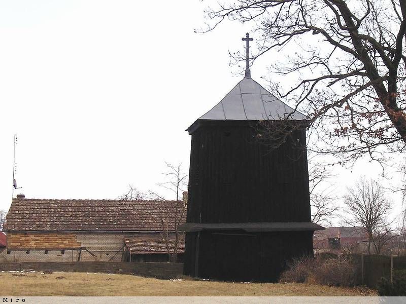 15 metrów od kościoła stoi drewniana dzwonnica kościelna z końca XVIII w., o konstrukcji słupowej, szalowana deskami i zwieńczona namiotowym hełmem