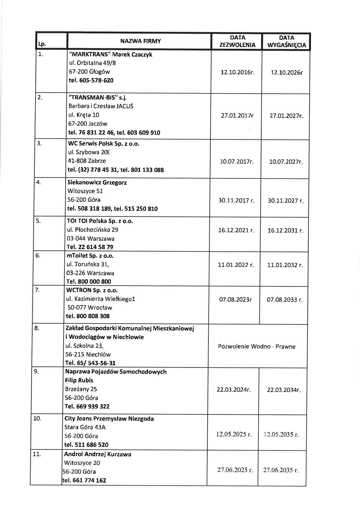 AKTUALNA LISTA FIRM ASENIZACYJNYCH