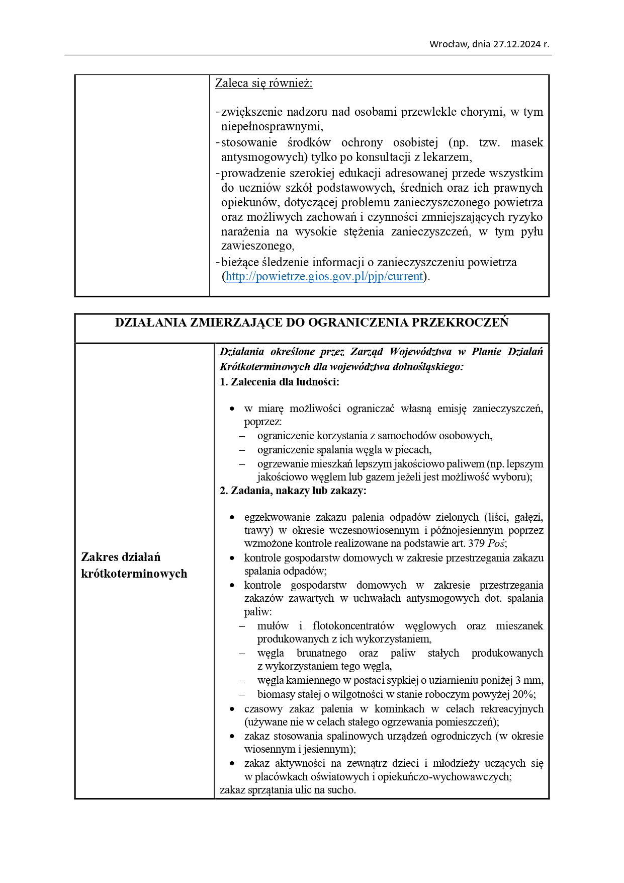 Plan działań krótkoterminowych dla Województwa Dolnośląskiego
