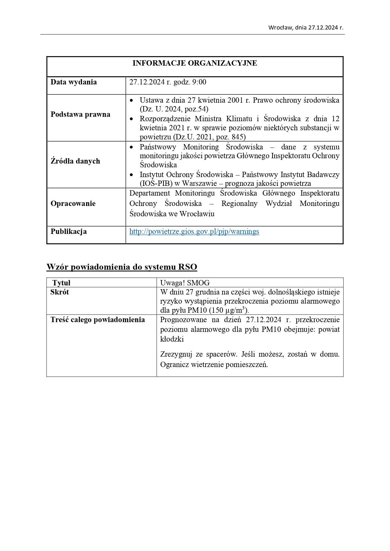 Komunikat nr 1