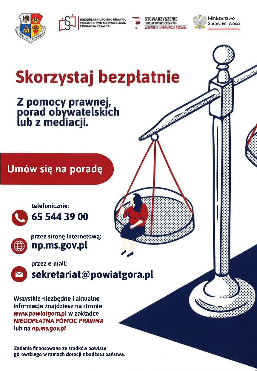 Masz problem? Wydaje Ci się, że Twoja sytuacja jest beznadziejna? Nie wstydź się o tym rozmawiać! Udaj się do punktu nieodpłatnej pomocy prawnej, nieodpłatnego poradnictwa obywatelskiego lub nieodpłatnej mediacji. Skorzystaj z bezpłatnej porady w Twojej sprawie. W punktach nieodpłatnej pomocy, porad udzielają prawnicy - adwokaci, radcowie prawni, a także doradcy obywatelscy i mediatorzy.