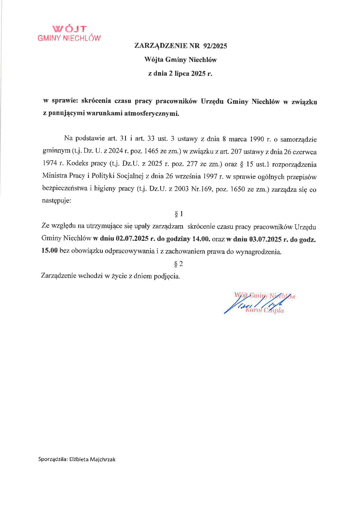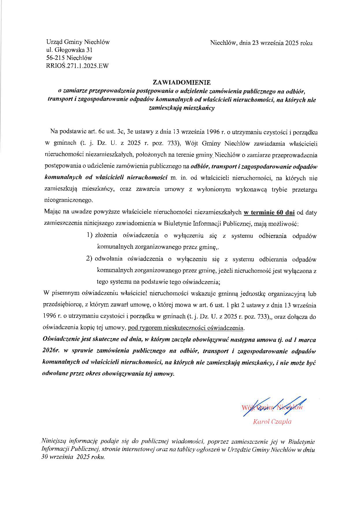 Podaje do wiadomości: