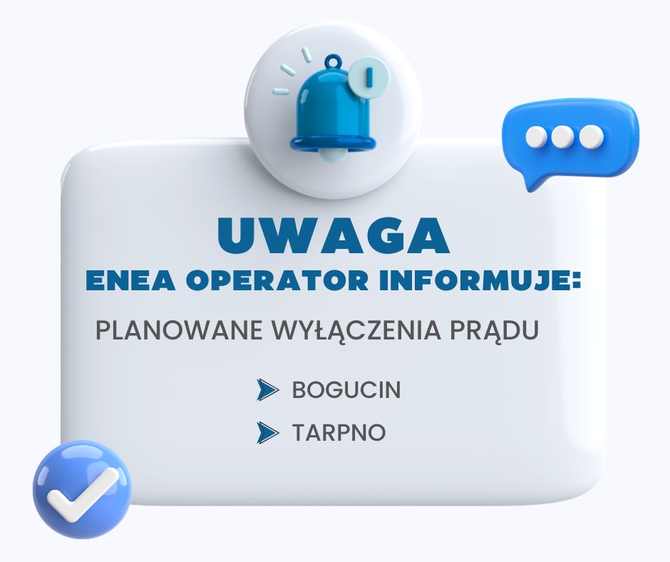 Planowane wyłączenia prądu na terenie Gminy Niechlów - Bogucin, Tarpno