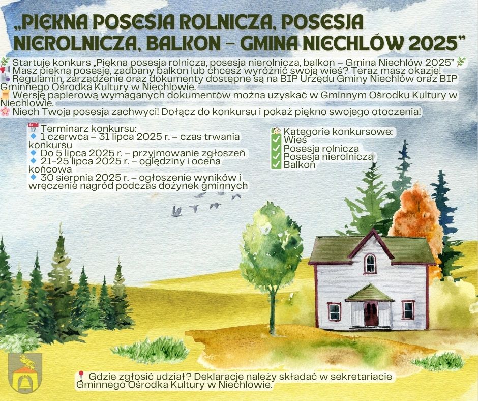 Konkurs „Piękna posesja rolnicza, posesja nierolnicza, balkon – Gmina Niechlów 2025” startuje!