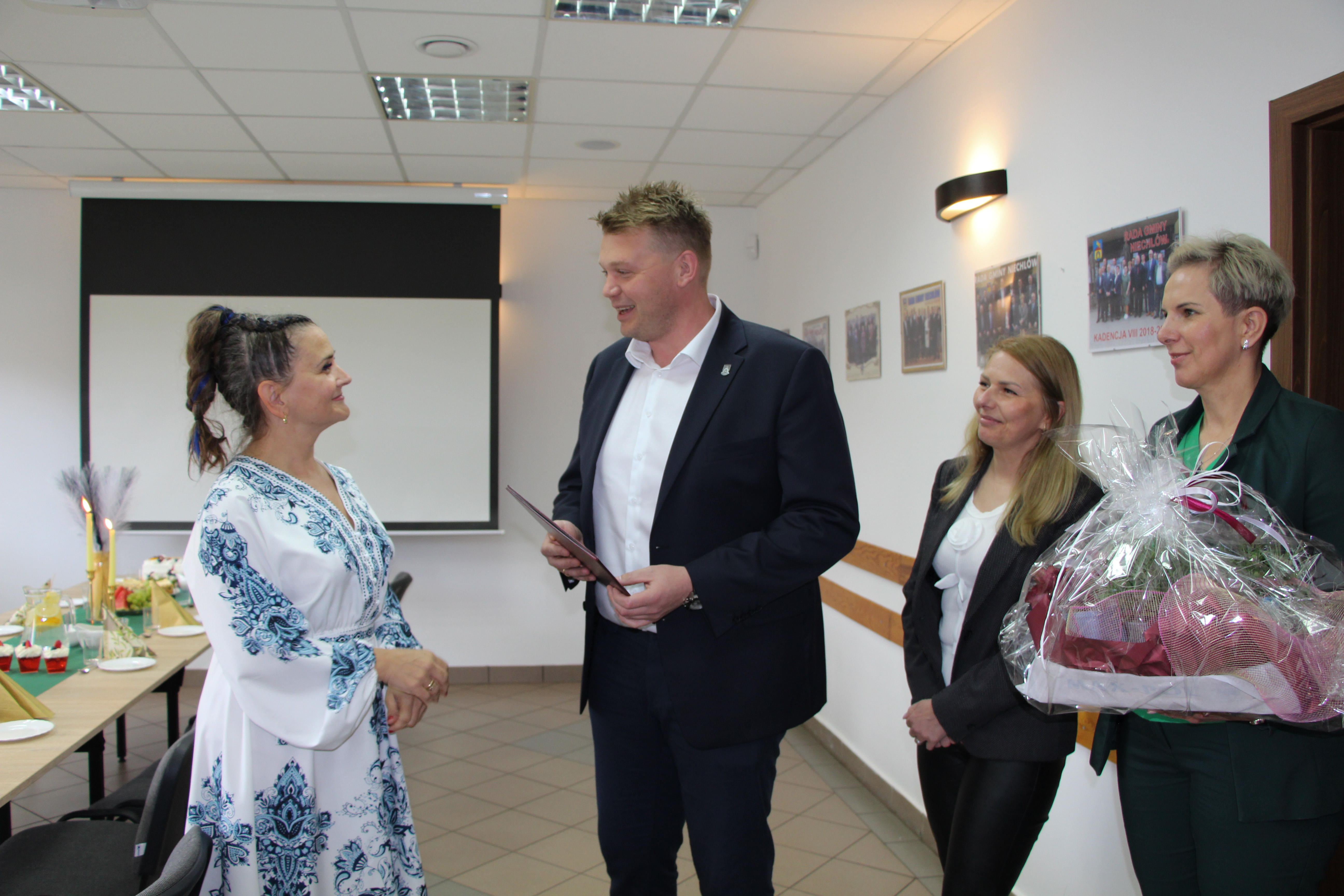 Wójt Gminy Niechlów Karol Czapla wraz z Sekretarz Gminy Danutą Nuckowską-Ciulak oraz Skarbnik Gminy Anną Mróz przekazali na ręce Pani Dyrektor Katarzyny Kurdek serdeczne życzenia dla wszystkich osób zaangażowanych w rozwój kultury. To dzięki Wam nasze społeczności tętnią życiem, inspiracją i wartościami, które budują tożsamość lokalną.