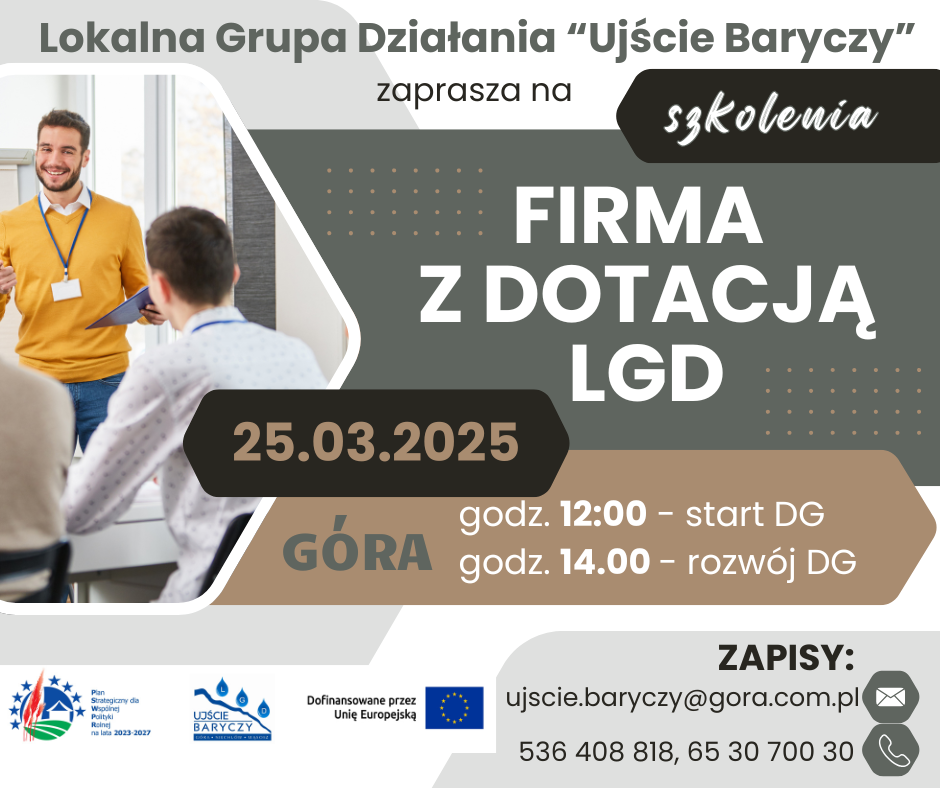 Informujemy, że Lokalna Grupa Działania „Ujście Baryczy” organizuje szkolenia dla osób zainteresowanych składaniem wniosków w ramach ogłoszonych naborów dotyczących podejmowania działalności gospodarczej (start DG) oraz rozwijania działalności gospodarczej (rozwój DG).