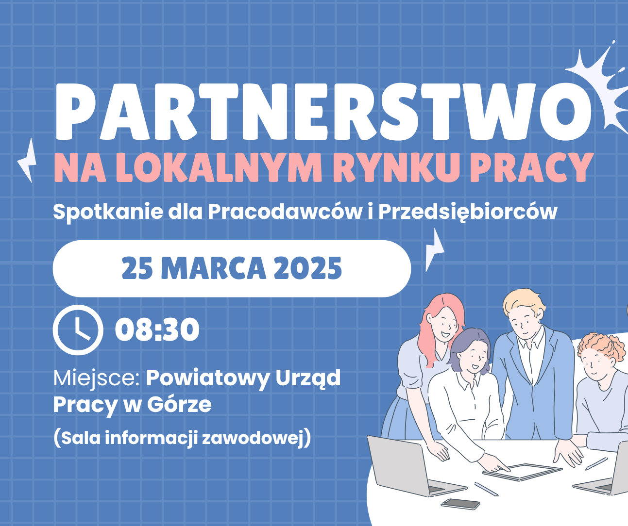 Dnia 25.03.2025r. o godz. 08:30 w siedzibie Powiatowego Urzędu Pracy w Górze odbędzie się spotkanie dla Pracodawców i Przedsiębiorców pt. „Partnerstwo na lokalnym rynku pracy”.