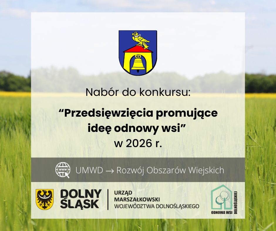 🌿✨Zarząd Województwa Dolnośląskiego ogłasza Otwarty konkurs ofert na realizację zadania publicznego Województwa Dolnośląskiego z zakresu działalności wspomagającej rozwój wspólnot i społeczności lokalnych pn. „Przedsięwzięcia promujące ideę odnowy wsi” dotyczący wsparcia społeczności lokalnych działających w inicjatywie „Odnowa Wsi Dolnośląskiej” w 2026 roku. 🌾💚
