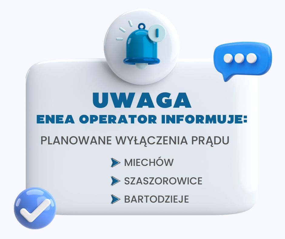 Planowane wyłączenia prądu na terenie Gminy Niechlów - Miechów, Szaszorowice, Bartodzieje