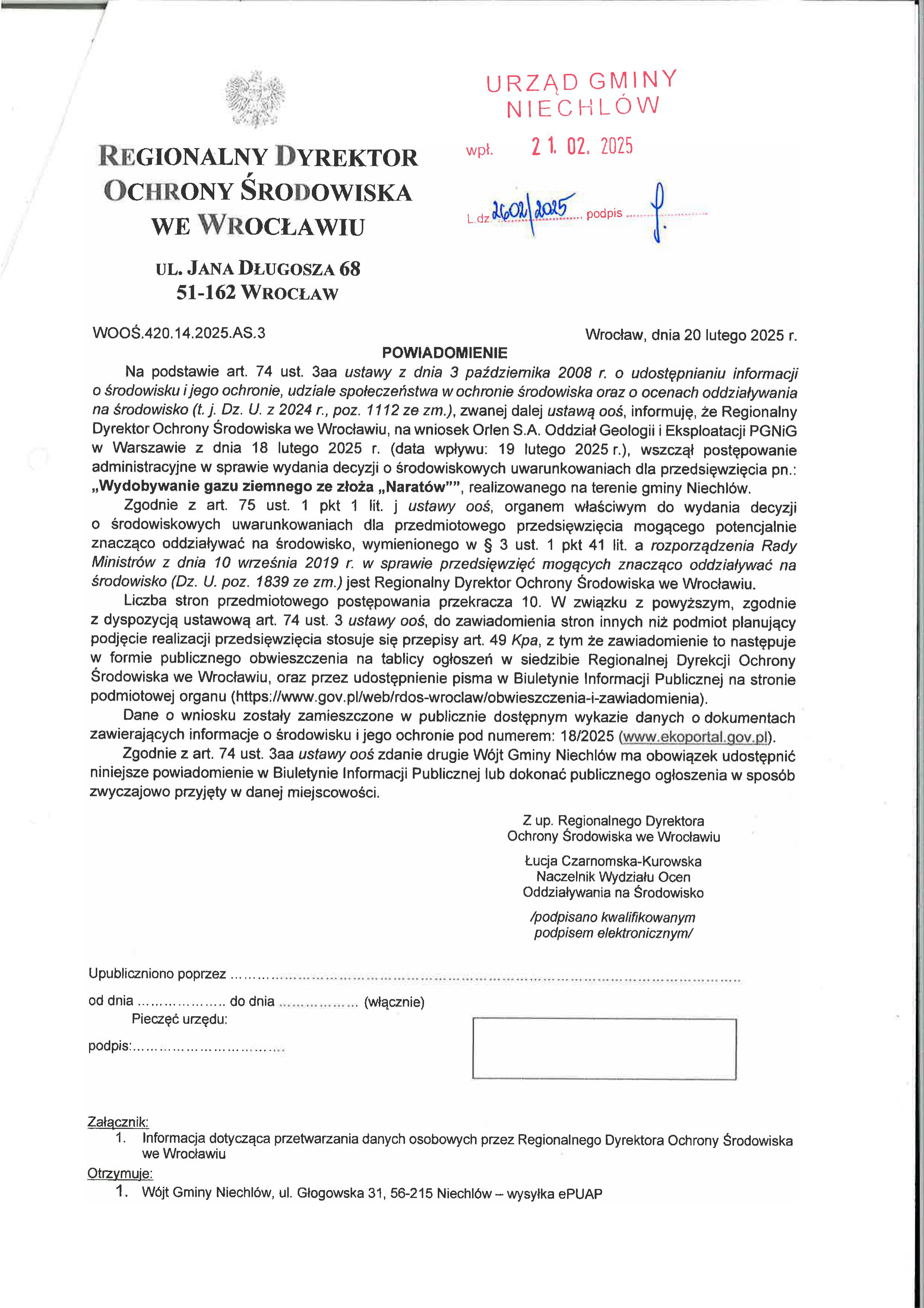Programu Rozwoju Obszarów Wiejskich na lata 2014-2020" na zadanie "Przebudowa 4 zbiorników retencyjnych w miejscowościach: Tarpno, Naratów, Wroniniec w celu poprawy gospodarki wodnej w Gminie Niechlów".
