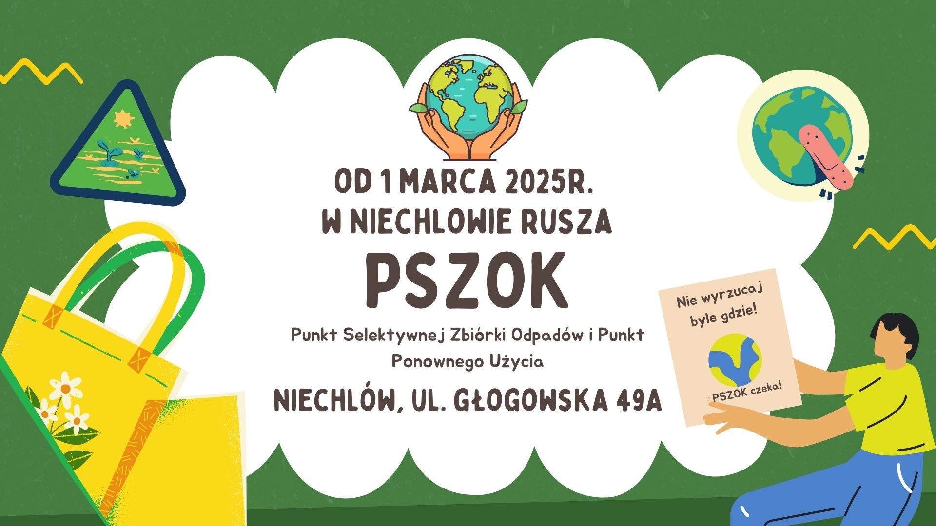 Mamy świetną informację dla wszystkich, którzy chcą dbać o czystość i ekologię w naszej gminie! Już od 1 marca 2025 r. przy ul. Głogowskiej 49A w Niechlowie startuje Punkt Selektywnej Zbiórki Odpadów Komunalnych (PSZOK). To miejsce, gdzie legalnie, bezpiecznie i w ramach miesięcznej opłaty za śmieci można pozbyć się problematycznych odpadów.