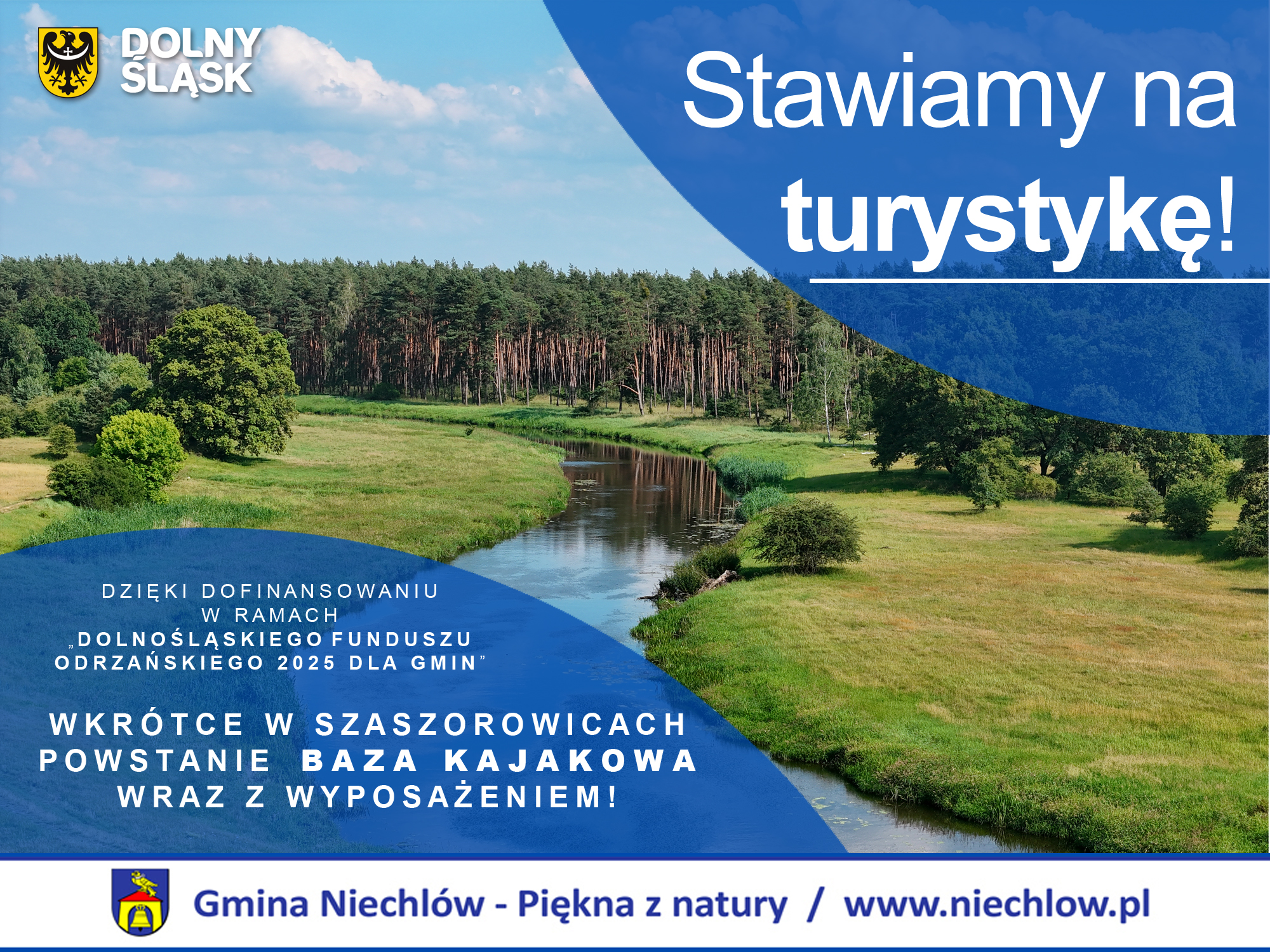 Mamy świetne wieści! Nasz projekt budowy Bazy Kajakowej w Szaszorowicach otrzymał 78 405 zł dofinansowania w ramach otwartego konkursu "Dolnośląski Fundusz Odrzański 2025 dla gmin". To aż 75% całkowitej wartości inwestycji, która wynosi 104 540 zł