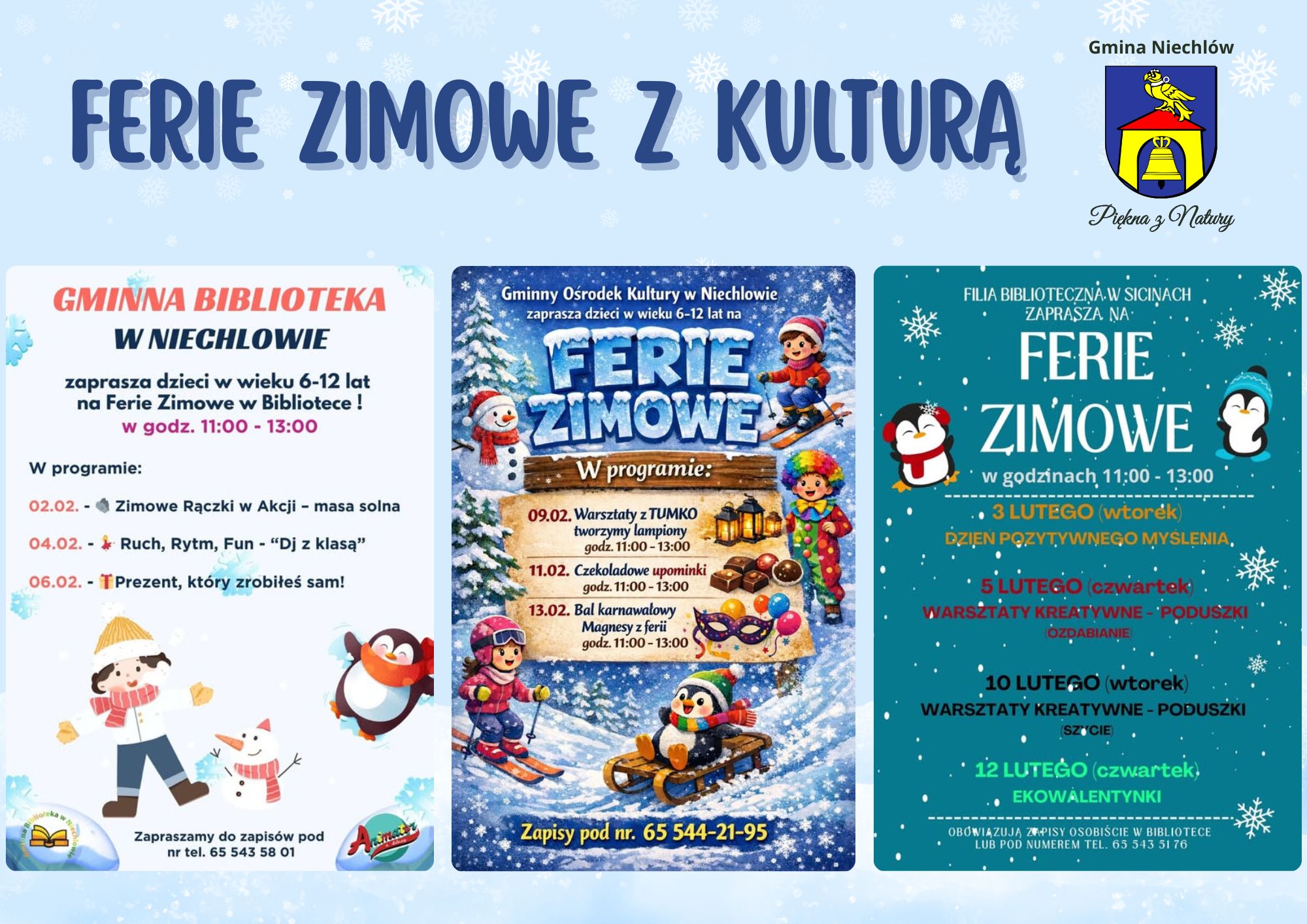 Już niebawem zimowa przerwa świąteczna - dwa tygodnie pełne wyjątkowych aktywności, zorganizowane z myślą o dzieciach i młodzieży z naszej gminy. Gminny Ośrodek Kultury w Niechlowie, Gminna Biblioteka w Niechlowie oraz Filia Biblioteczna w Sicinach przygotowały program pełen różnorodnych zajęć, które sprawią, że ten czas wolny od szkoły będzie niezapomniany!