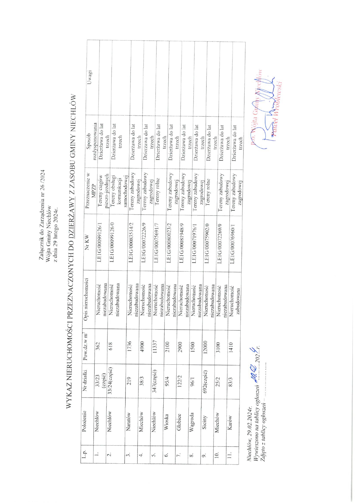 Zarządzenie nr 26/2024 Wójta Gminy Niechlów