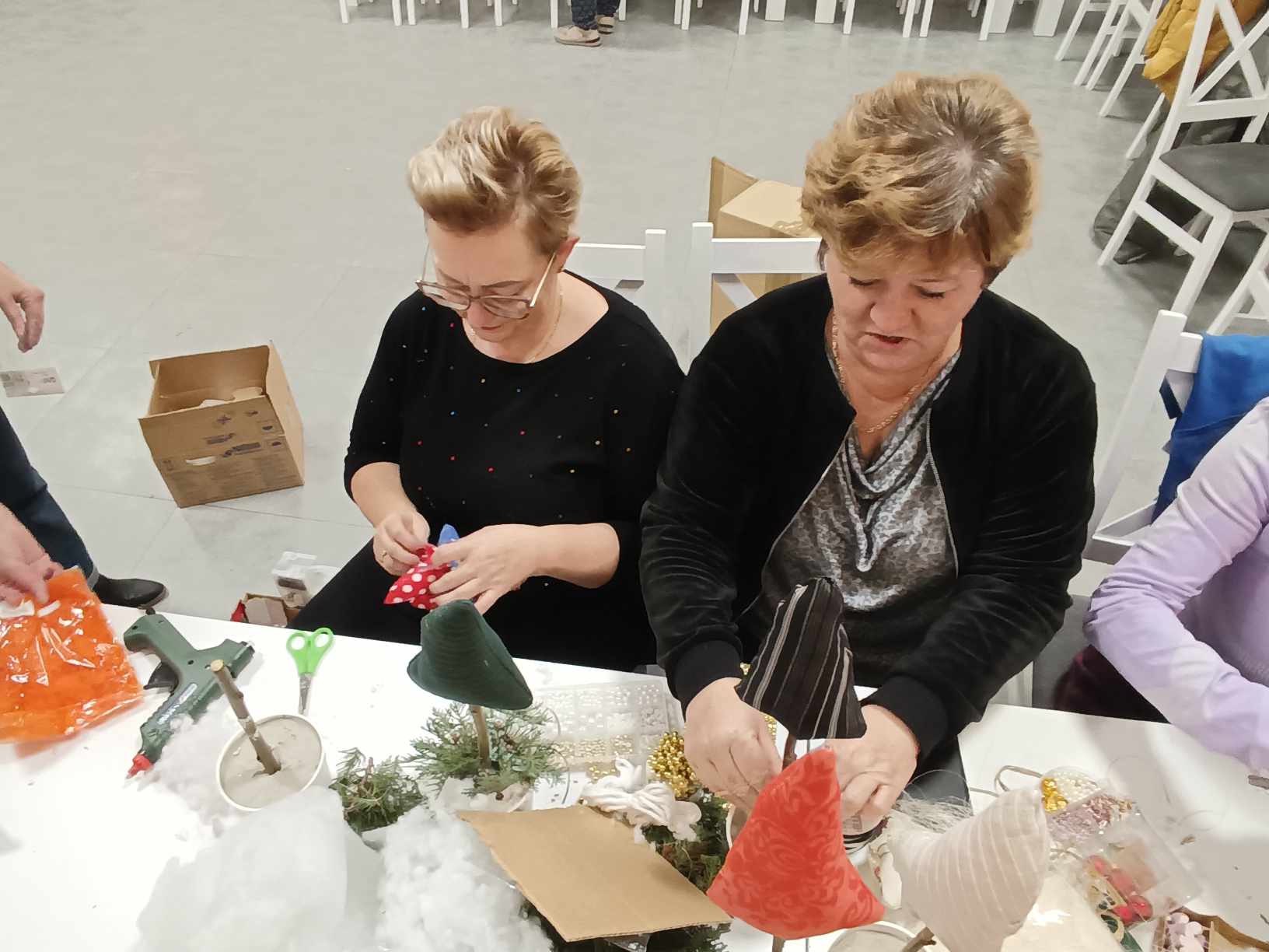 Podczas zajęć florystycznych uczestnicy z zaangażowaniem tworzyli wyjątkowe stroiki bożonarodzeniowe. Każda kompozycja odznaczała się starannością i kreatywnością, a ich piękno wzbogaciło II Galę Niechlowskiego Wolontariatu 2024, dodając uroku temu wyjątkowemu wydarzeniu.