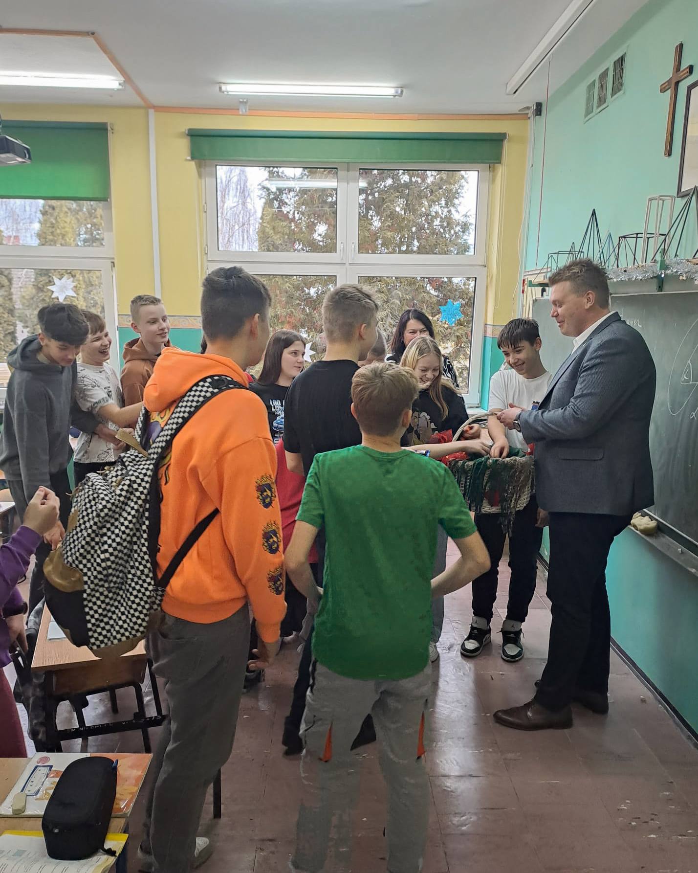 Gospodarz Gminy odwiedził uczniów i nauczycieli w jednych z ostatnich godzin lekcyjnych przed Świętami Bożego Narodzenia, by złożyć najlepsze życzenia uczniom, kadrze nauczycielskiej a także pracownikom szkół Gminy Niechlów.