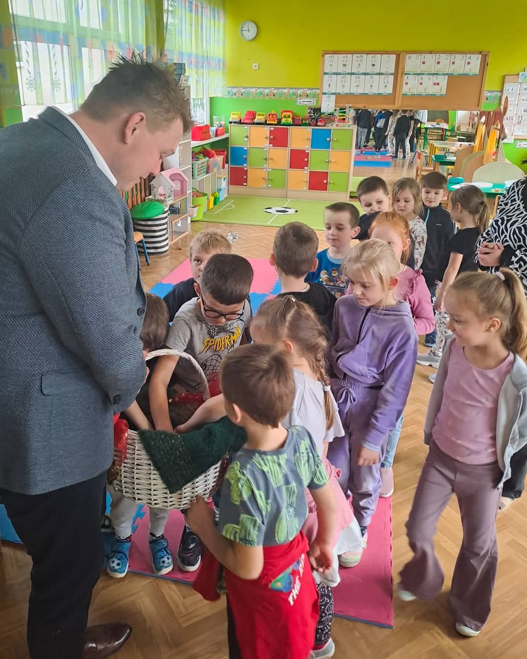 Z tej okazji nie mogło obyć się bez niespodzianki - poza serdecznymi życzeniami na Święta i Nowy Rok, Wójt przywiózł ze sobą zapas słodyczy, którymi z radością obdarował dzieci i młodzież.
