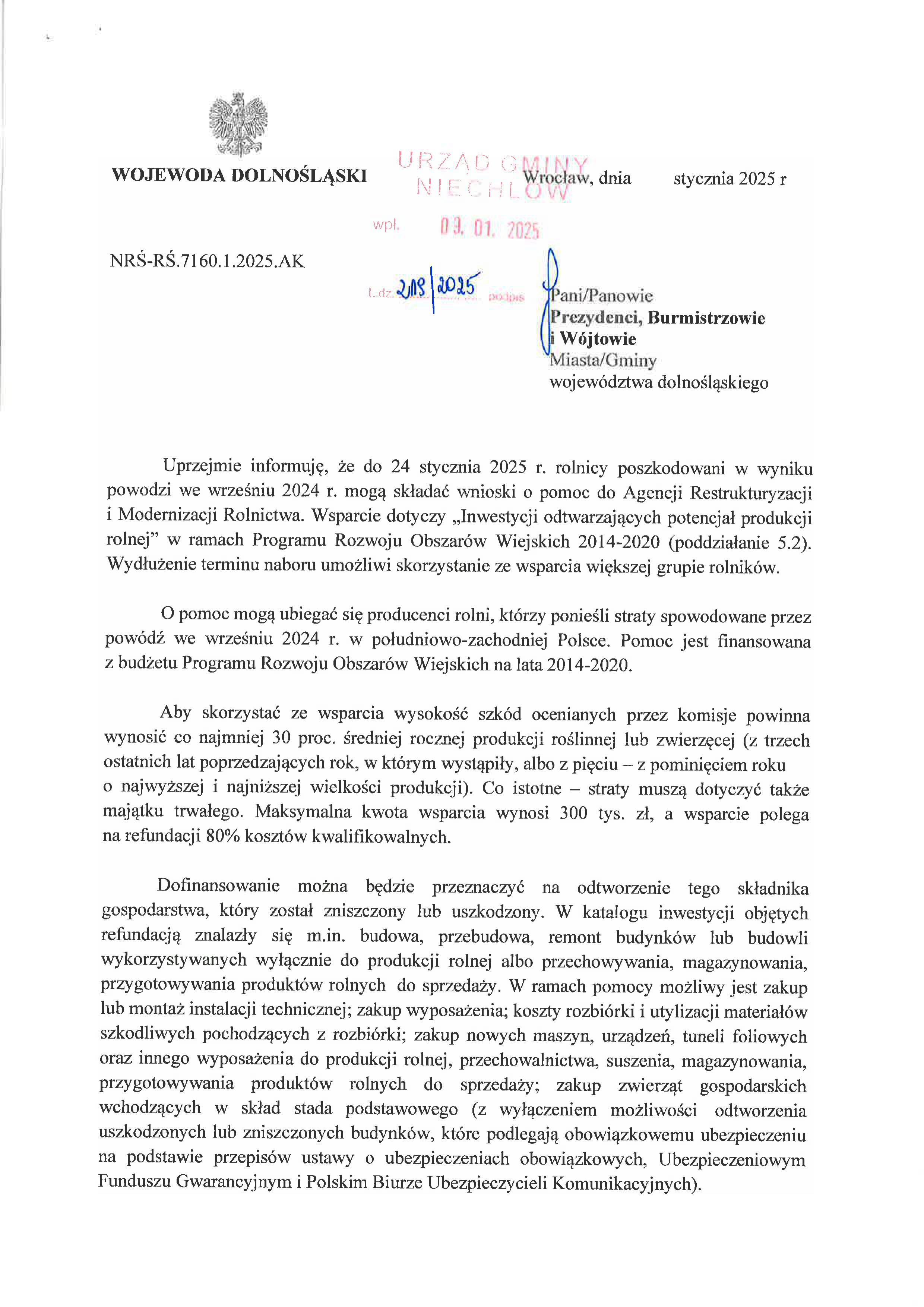 Informacja Wojewody Dolnośląskiego dla rolników poszkodowanych w powodzi