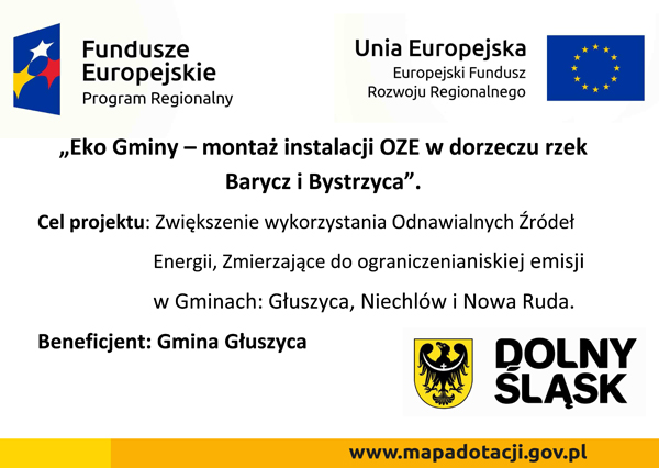 Dofinansowanie w ramach Regionalnego Programu Operacyjnego Województwa Dolnośląskiego 2014-2020 oprócz Gminy Niechlów otrzymali także trzej partnerzy: Gmina Głuszyca – lider projektu, Gmina Nowa Ruda, Fundacja IntelEko.pl ze Świdnicy. Dofinansowanie zostanie przeznczone na zakup i montaż instalacji do wytwarzania energii cieplnej i elektrycznej z odnawialnych źródeł energii w gospodarstwach domowych. Celem projektu jest zwiększenie wykorzystania odnawialnych źródeł energii, zmierzające do ograniczenia niskiej emisji w gminach objętych projektem.