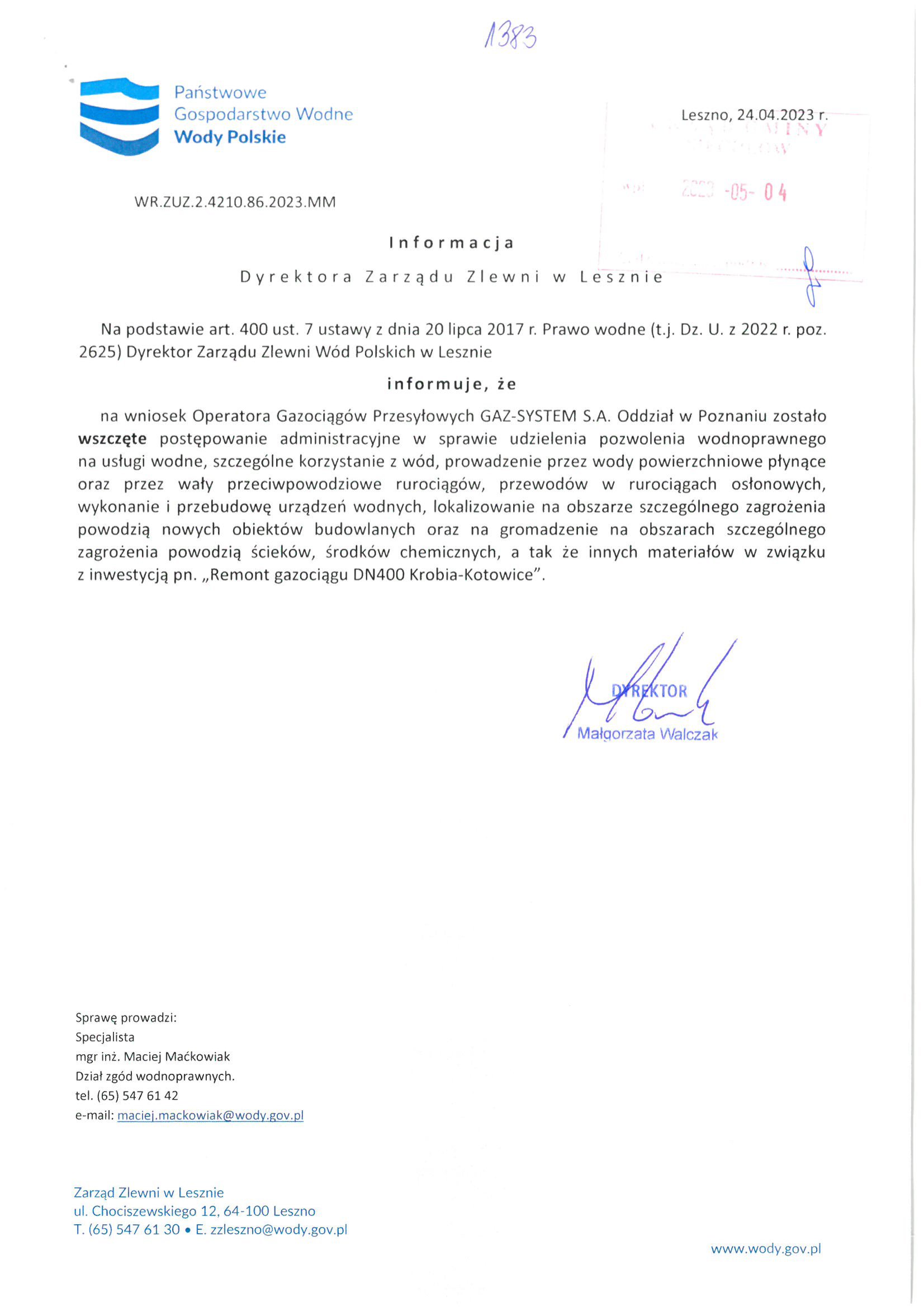 Informację wydano na podstawie art. 11 ustawy z dnia 14 kwietnia 2023 r. o zmianie ustawy o obowiązkach przedsiębiorców w zakresie gospodarowania niektórymi odpadami oraz o opłacie produktowej oraz niektórych innych ustaw.