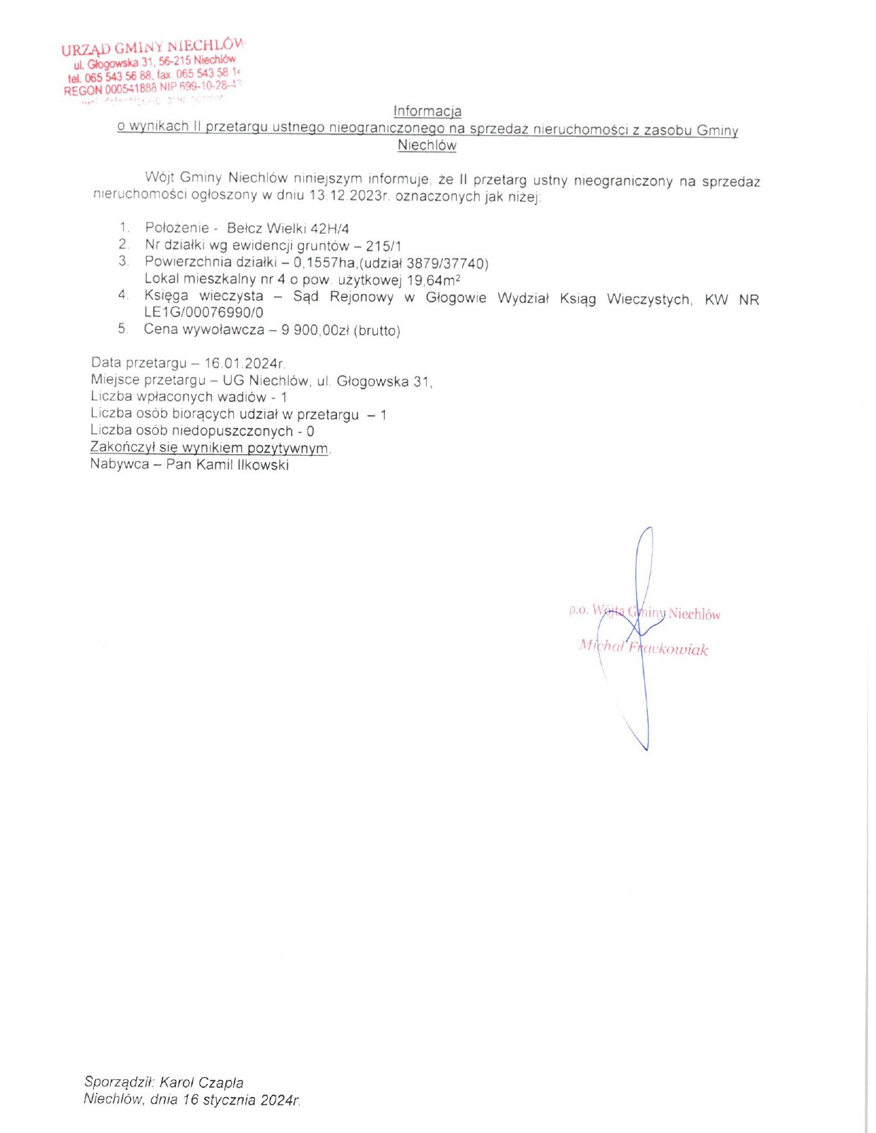 W dniu dzisiejszym 29.01.2024 r. z powodu awarii na sieci wodociągowej w miejscowości Miechów nastąpi przerwa w dostawie wody.