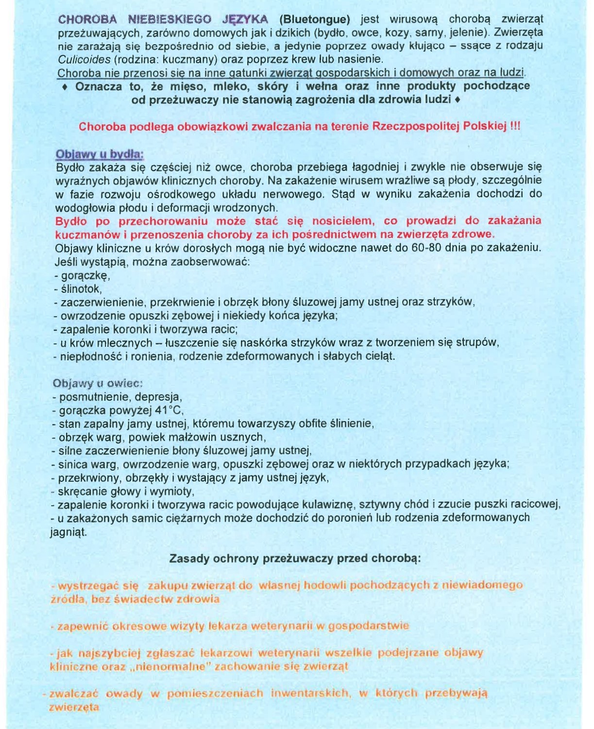 Choroba niebieskiego języka (Bluetongue) jest zakaźną chorobą przeżuwaczy, zarówno domowych jak i dzikich (chorują na nią bydło, owce i kozy, ale także sarny, jelenie, łosie, afrykańskie antylopy, wielbłądy, słonie), wywoływaną przez wirus z rodzaju Orbivirus (Reoviridae). Zwierzęta nie zarażają się bezpośrednio od siebie, a jedynie poprzez owady kłująco-ssące z rzędu muchówek, rodzaju kuczmany (Culicoides) oraz poprzez krew lub nasienie.