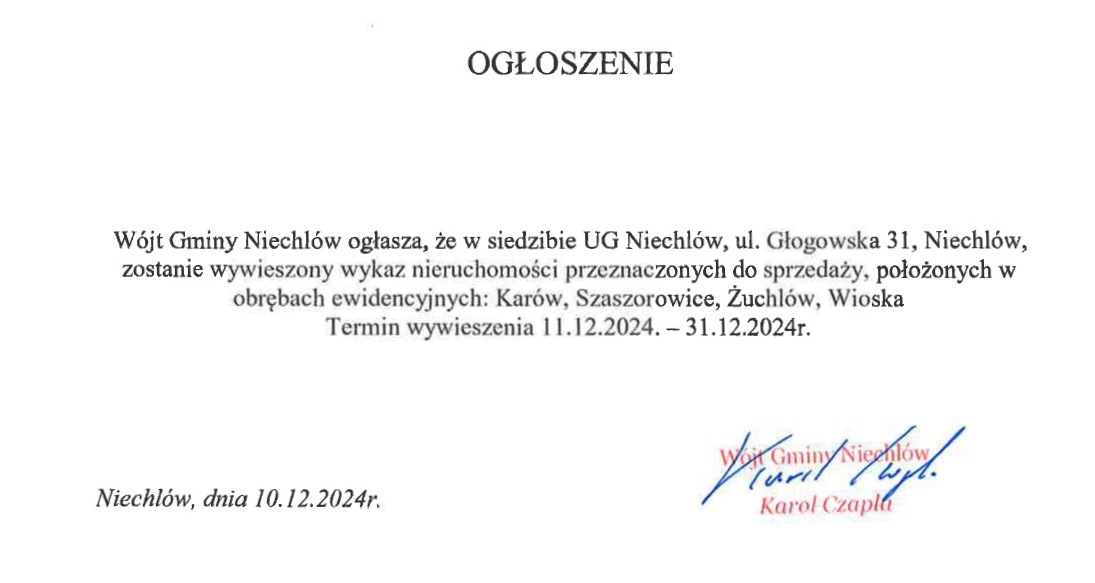 pn.: „Najładniejsza zewnętrzna dekoracja świąteczna domu, mieszkania (balkonu), instytucji na terenie Gminy Niechlów 2024/2025”